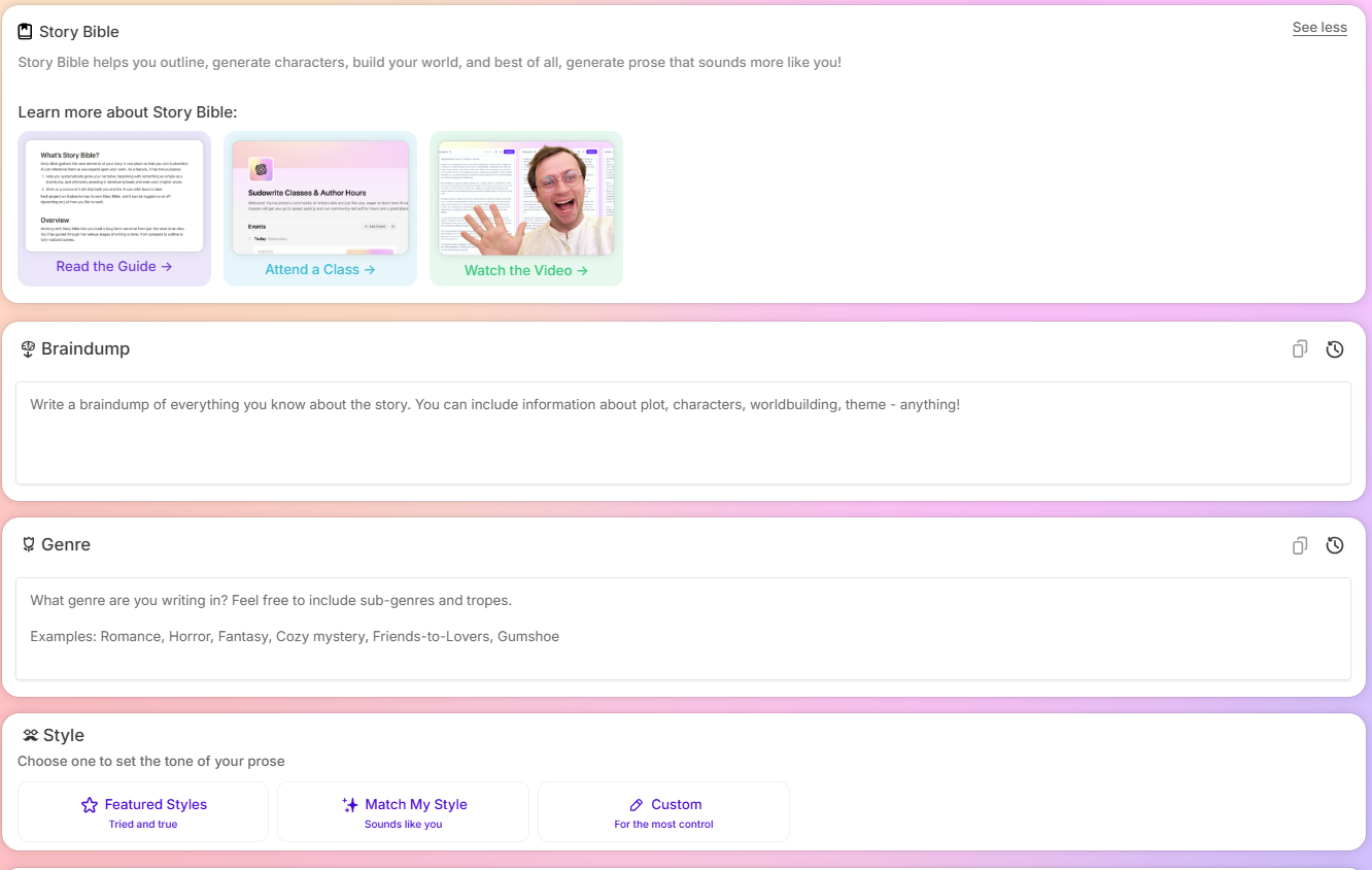 Sudowrite ini kayak asisten pribadi buat nulis. Dia bisa bantu kamu bukan cuma bikin outline buku, tapi juga ngembangin ide, nambahin detail, bahkan sampai nyaranin dialog yang keren!