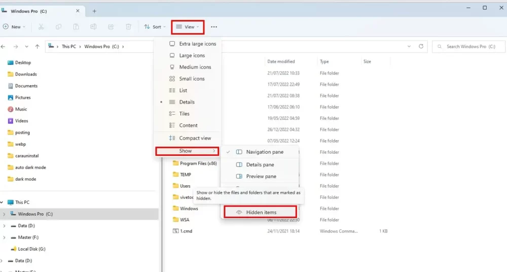 Tapi, eh tapi, ada tapinya nih. Cara ini tuh terlalu mainstream. Soalnya, orang yang agak pinter dikit juga tau cara nampilin file yang disembunyiin. Tinggal buka “View” di File Explorer, terus centang “Hidden items”. Jeng jeng! File kamu nongol lagi.