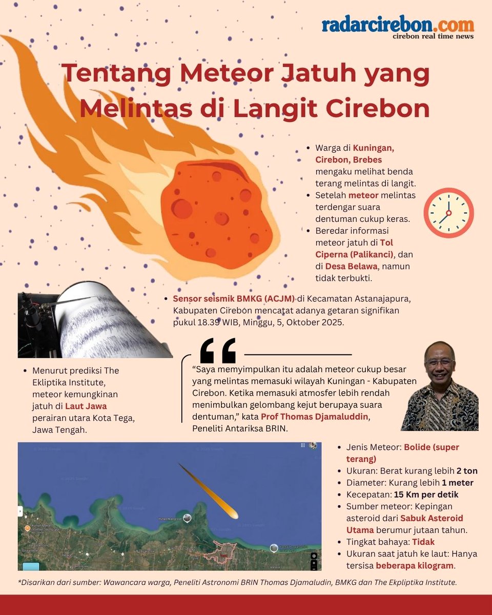 Kabar soal kemungkinan jatuhnya meteor langsung jadi perbincangan hangat, seiring dengan banyaknya laporan warga soal suara ledakan dan cahaya terang yang terlihat di langit Cirebon. Tim ahli dari berbagai lembaga pun langsung bergerak cepat menyelidiki fenomena ini, mencoba memberikan penjelasan ilmiah di balik kejadian yang bikin penasaran banyak orang.