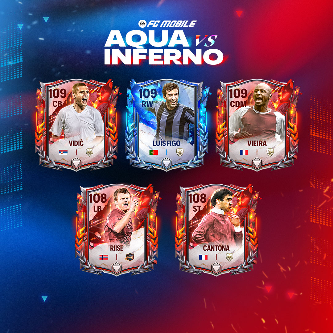 Aqua vs Inferno ini yang bikin nagih! Konsepnya pertarungan seru antara dua tim dengan tema berbeda. Kamu diajak buat milih antara Tim Aqua atau Tim Inferno, yang masing-masing nawarin pemain dan item eksklusif dengan tema yang unik. Pilihanmu ini bakal nentuin hadiah dan pemain yang bisa kamu dapetin selama event berlangsung. Jadi, gak cuma soal kekuatan tim, tapi juga strategi dan pilihan yang tepat.