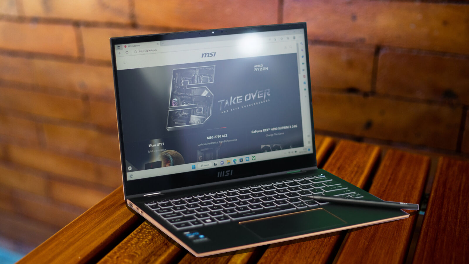 Layar sentuhnya juga responsif, enak buat navigasi atau menggambar. Dilengkapi juga dengan MSI Pen (dijual terpisah), jadi kamu bisa coret-coret atau bikin sketsa langsung di layar.